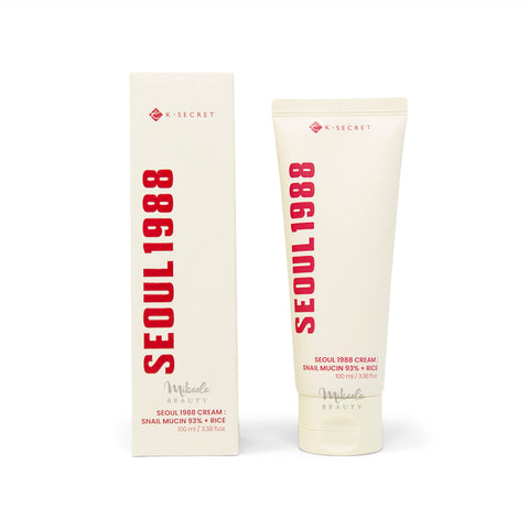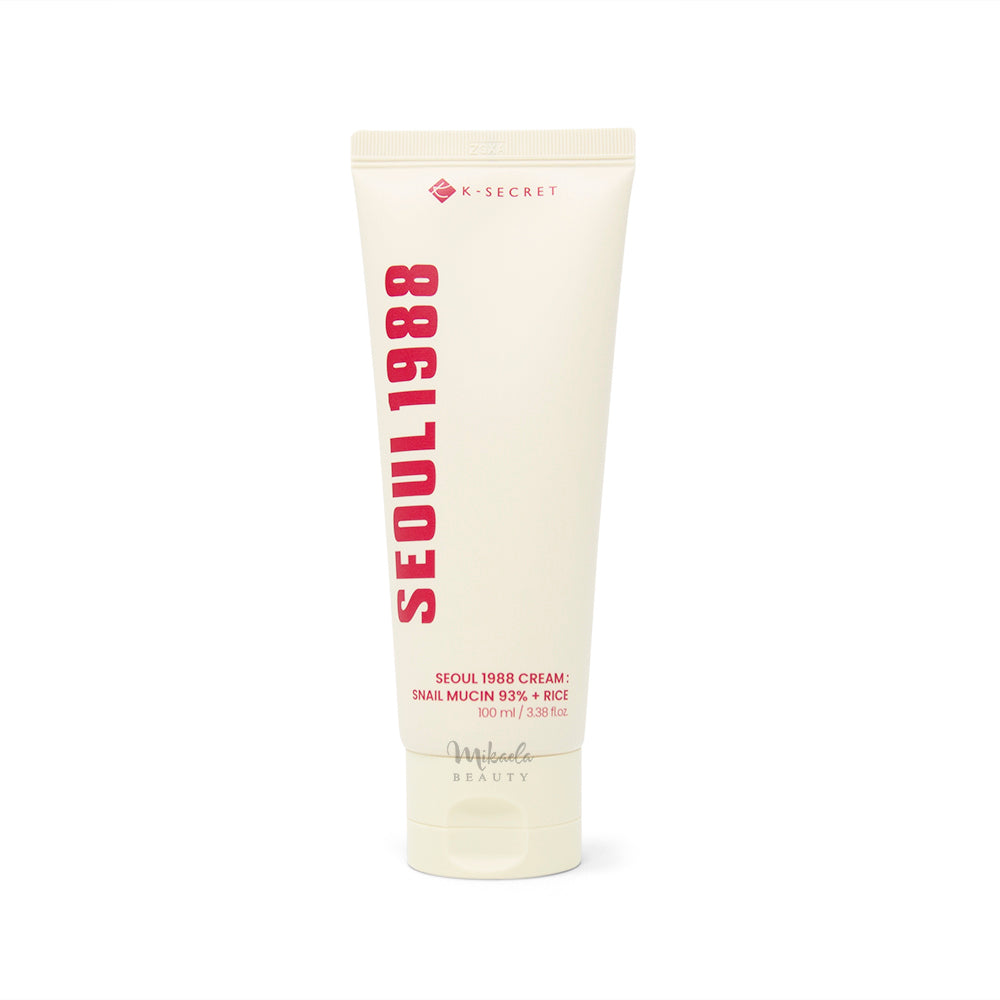 The K-SECRET Seoul 1988 Cream: Snail Mucin 93% + Rice is enriched with snail secretion filtrate and rice ferment filtrate to deeply hydrate and brighten skin tone. This gel cream is also enriched with panthenol and allantoin to soothe and strengthen the skin’s barrier for a healthy and radiant complexion.